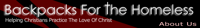 Backpacks for the homeless means taking a few dollars… $20 is a good number for the pack and all the contents. You can purchase a used backpack and fill it with food, a blanket, a tarp, toothbrush, toothpaste, soap, a washcloth, a garbage bag and a bible. I get as many of these things as I can from resale shops. You can get a decent backpack at the thrift store for $1.50. The same backpack at Wal-Mart is going to cost $10. I buy 10 tubes of toothpaste and toothbrushes from the dollar store, along with big multi-packs of soap and washcloths. The tarp and blanket are important in the winter because they can be the most valuable of survival tools. The tarp is thick plastic, and on a cold night, a homeless person can put the blanket in the tarp, then roll up inside of it. This acts like a sleeping bag and can keep out even the most intrusive cold. It’s not perfect, but it works. For food I usually include canned foods, like tuna, soup, sardines, crackers, a large bottle of water and canned fruit. Don’t forget a can opener!