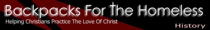 As I've said elsewhere, Backpacks For The Homeless didn't originate with me, but it did come to me through a lot of prayer, not through any outside source. To my knowledge, the first group to practice Backpacks was a girl scout troop in Cleveland, Ohio.
